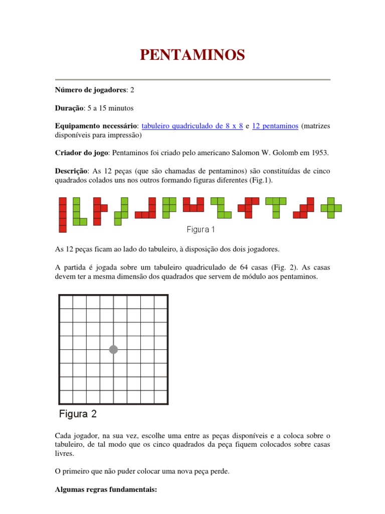 Curiosidade: Solomon Golomb, criador do jogo, deu a cada um dos 12 pentaminos o