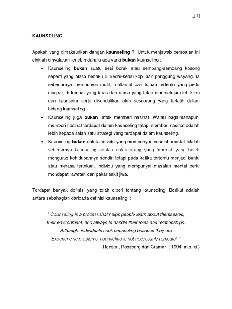 Kaunseling Individu 1. Kuala Lumpur : Cetakrapi Sdn. Bhd.