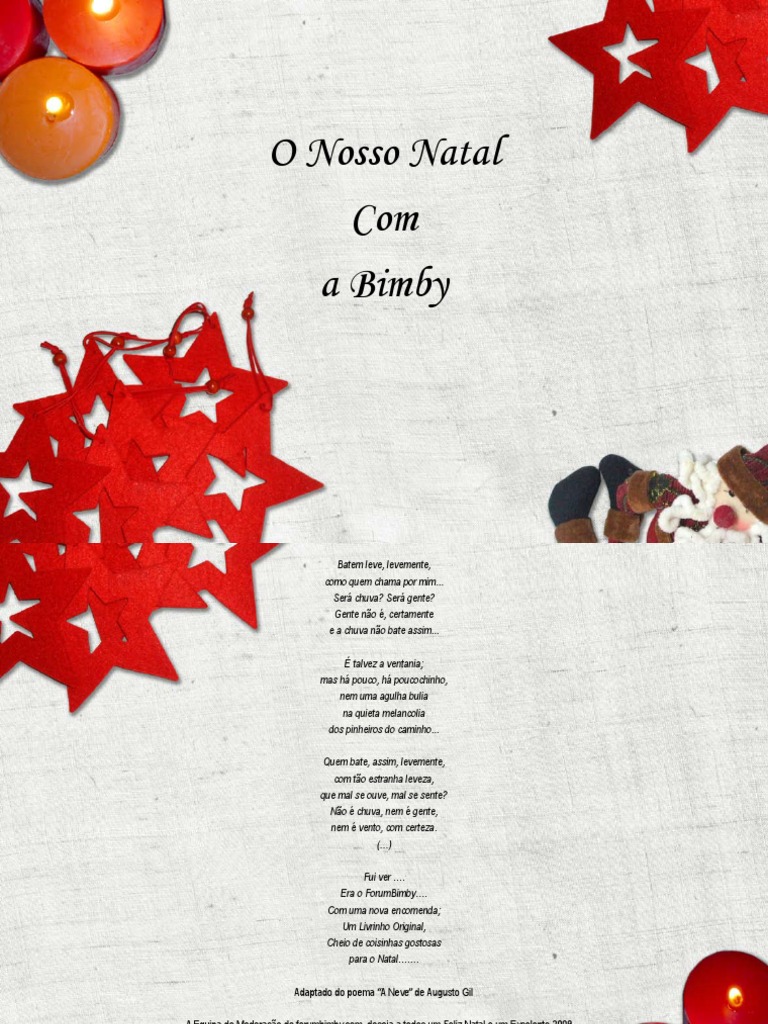 A Equipa de Moderação do forumbimby.com, deseja a todos um Feliz Natal e um Excelente 2009… Livro elaborado por Carocas. Gisa e Guigas