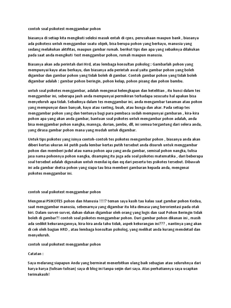 Untuk tips psikotes yang isinya contoh-contoh tes psikotes mengambar pohon , biasanya anda akan