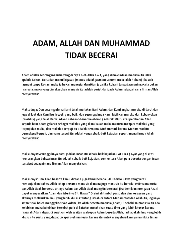dan Allah tidak bercerai, ertinya Adam dan Allah tidak mungkin bercerai, jika demikian mengapa Azazil