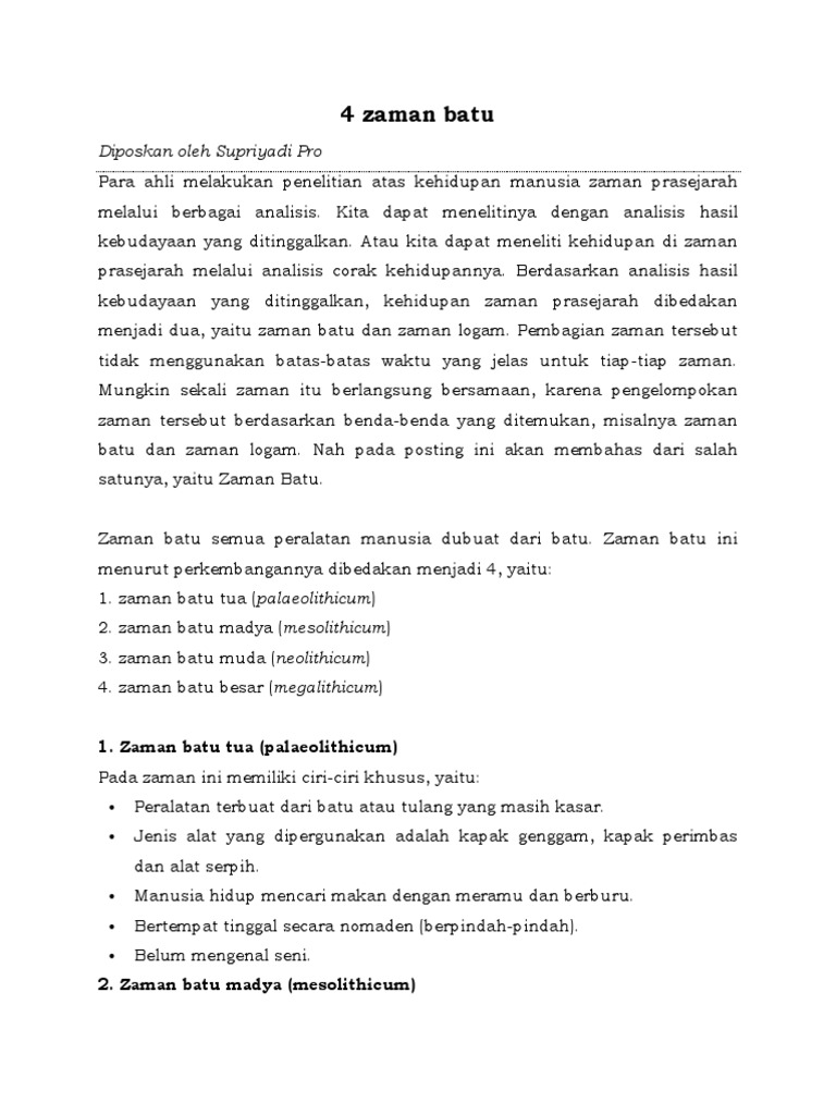 satunya, yaitu Zaman Batu.
