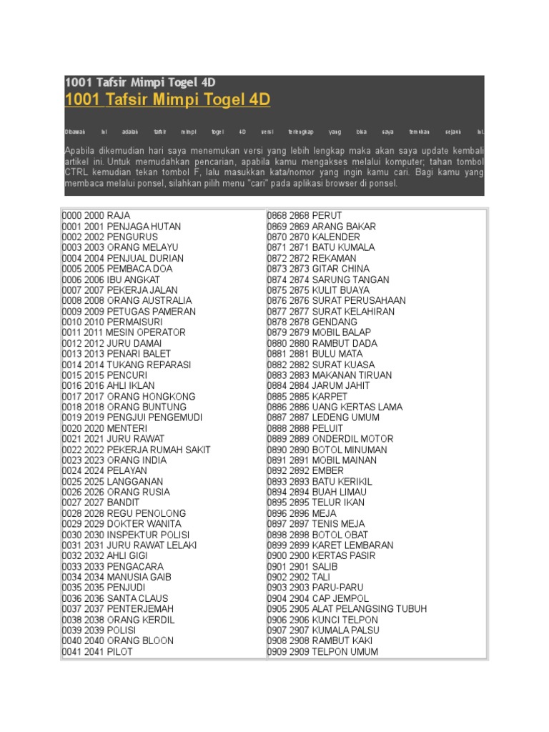 1001 Tafsir Mimpi Togel 4D
