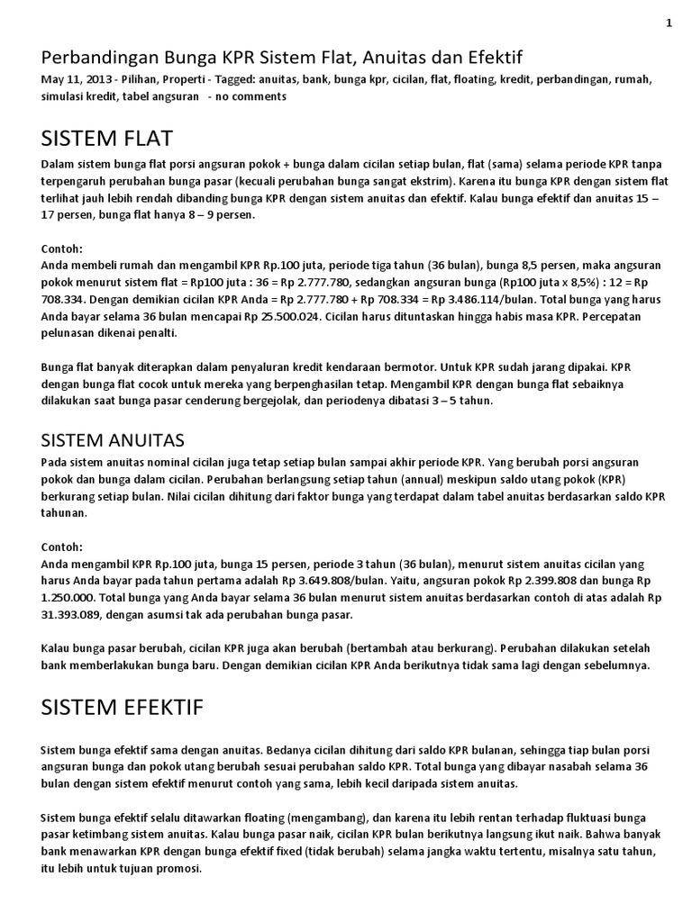 May 11, 2013 - Pilihan, Properti - Tagged: anuitas, bank, bunga kpr, cicilan, flat, floating, kredit, perbandingan, rumah,