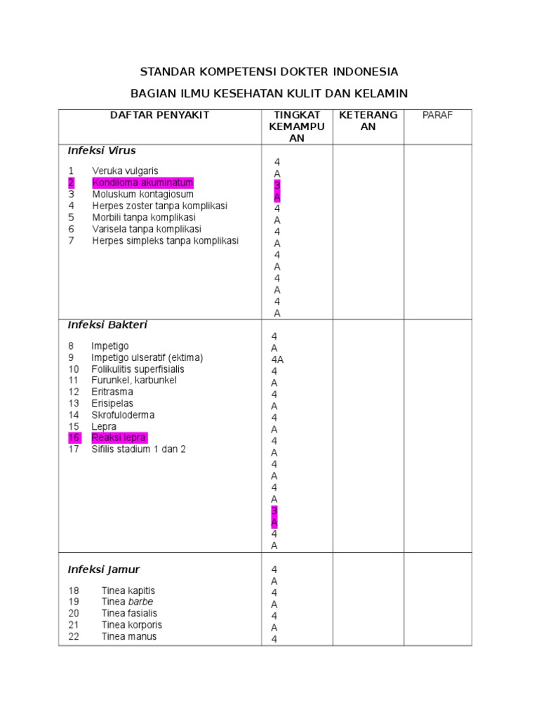 DAFTAR PENYAKIT TINGKAT