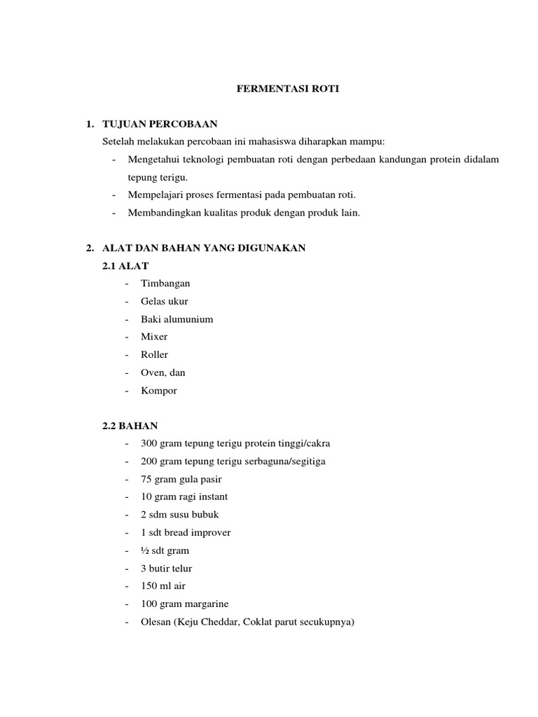 - Mengetahui teknologi pembuatan roti dengan perbedaan kandungan protein didalam