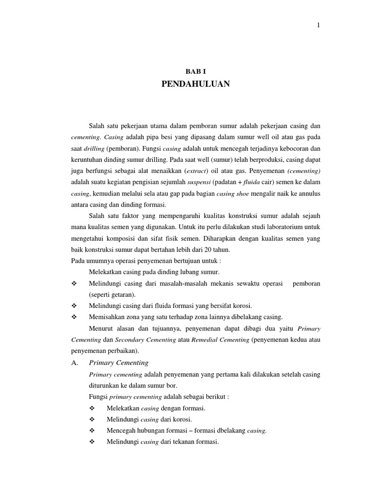 cementing. Casing adalah pipa besi yang dipasang dalam sumur well oil atau gas pada
