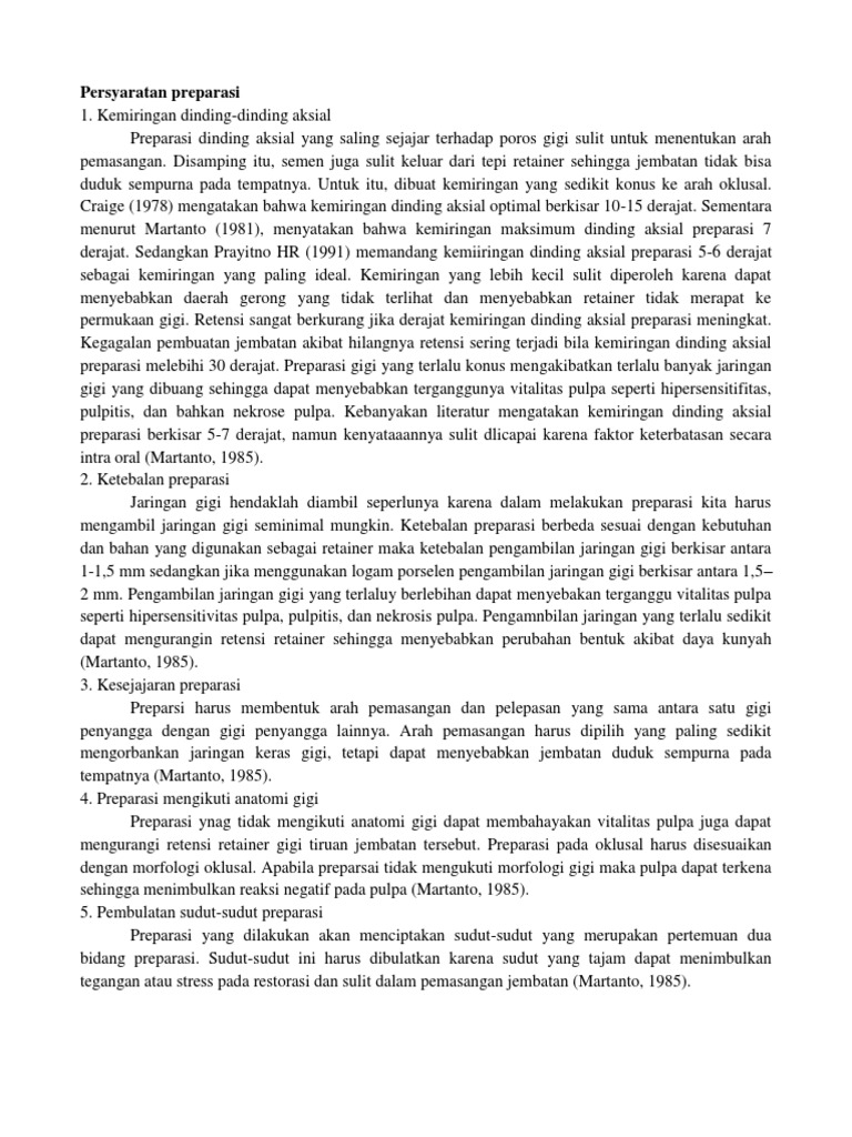 Persyaratan preparasi