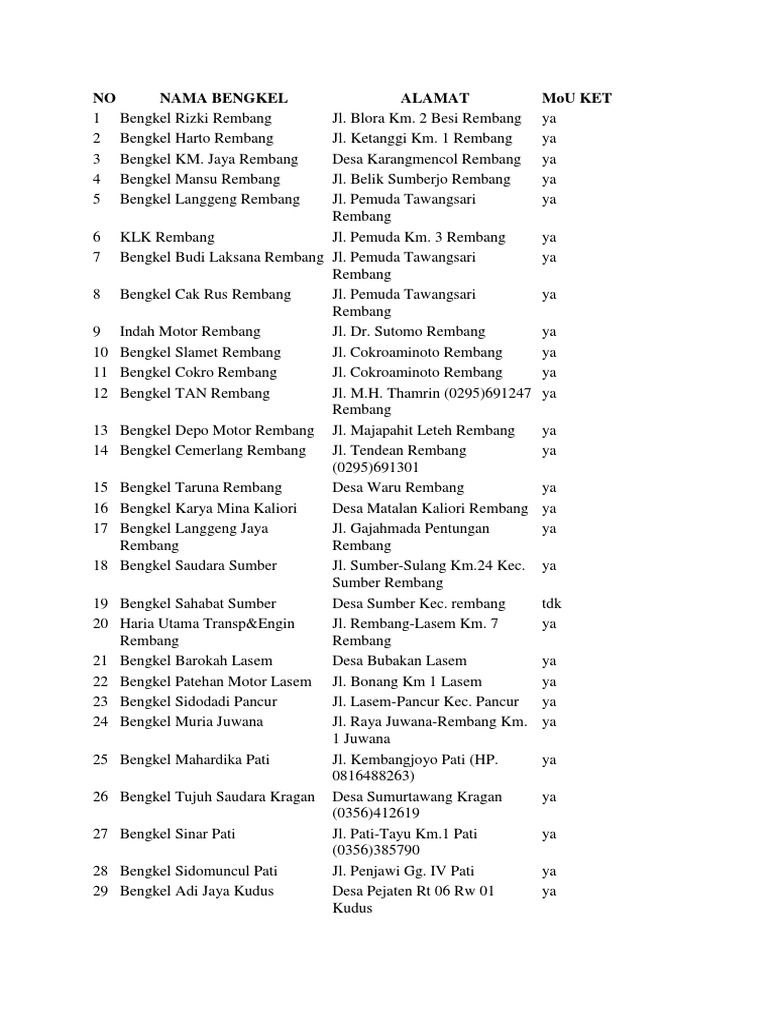 28 Bengkel Sidomuncul Pati Jl. Penjawi Gg. IV Pati ya