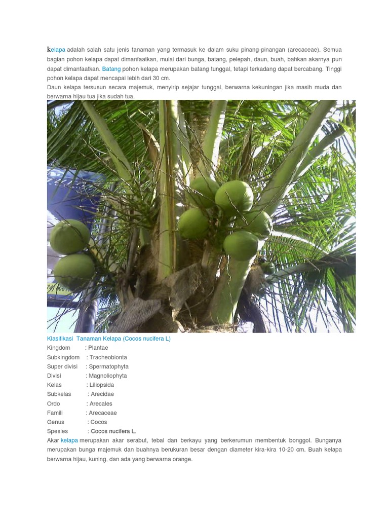 Klasifikasi Tanaman Kelapa (Cocos nucifera L)