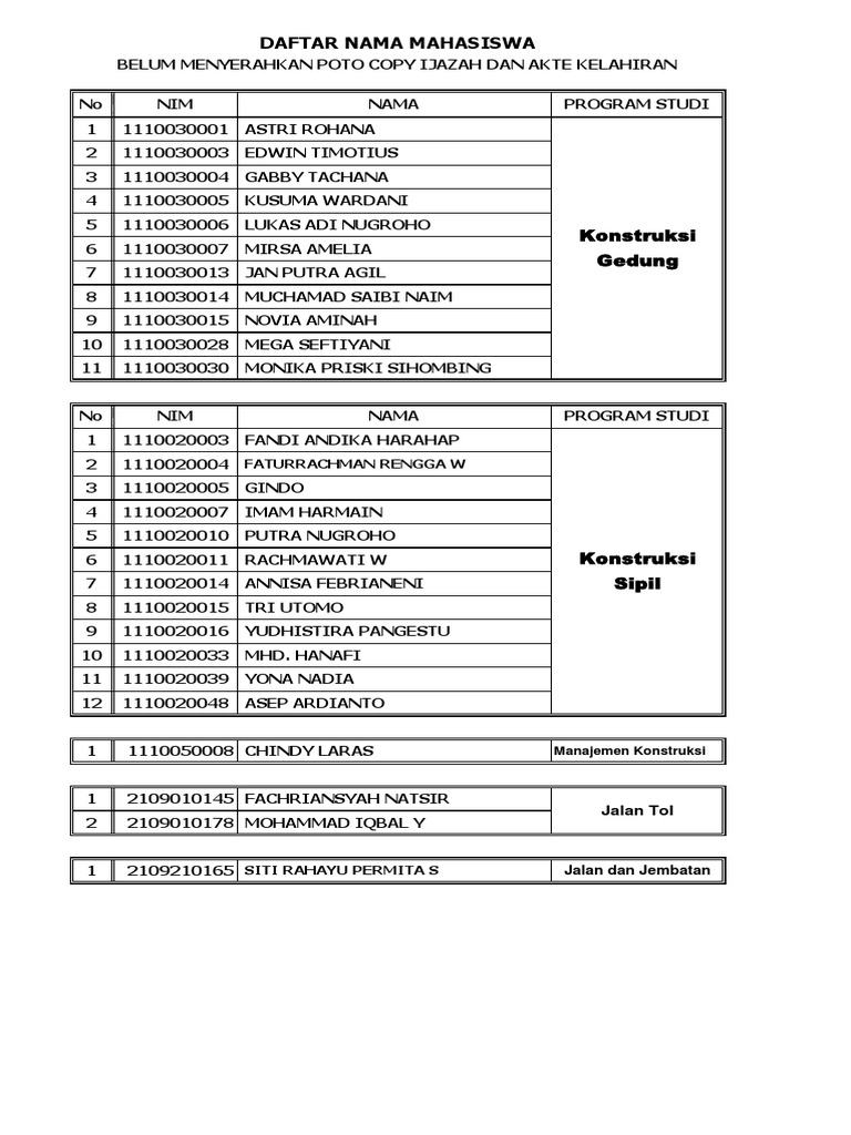 BELUM MENYERAHKAN POTO COPY IJAZAH DAN AKTE KELAHIRAN