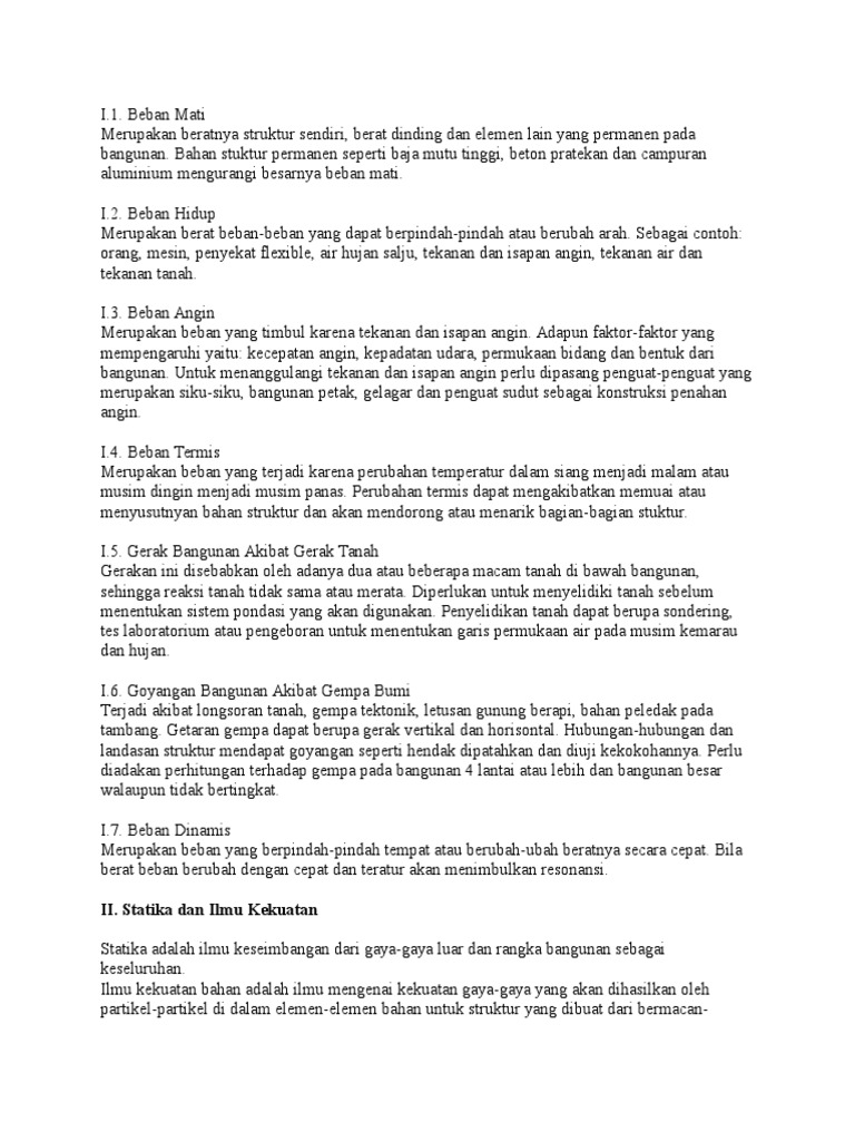sendiri , beban-beban berguna dan gaya-gaya luar seperti tekanan angin, gempa bumi, dan lain-