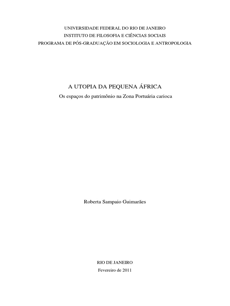 MOURA, Roberto. Tia Ciata e a Pequena frica no Rio de Janeiro. Rio de Janeiro: