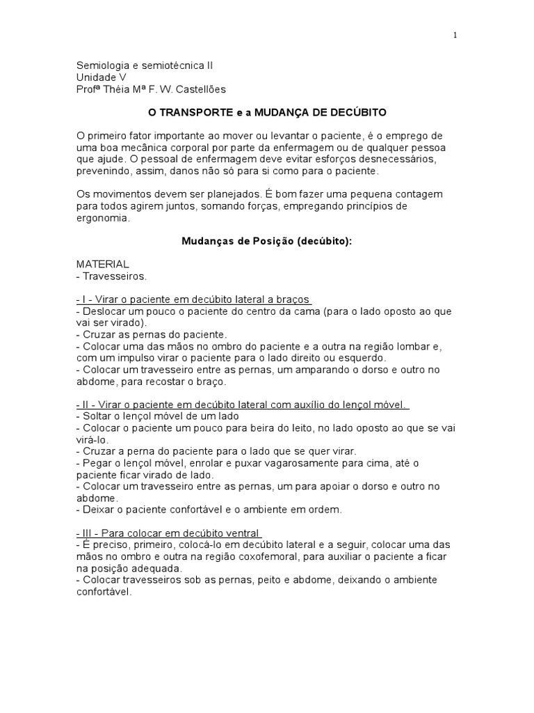 3 IV 3 Como le!ar o aciente ara a ca$eceira do leito