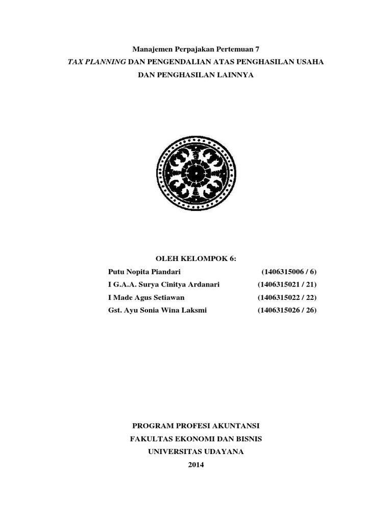 TAX PLANNING DAN PENGENDALIAN ATAS PENGHASILAN USAHA