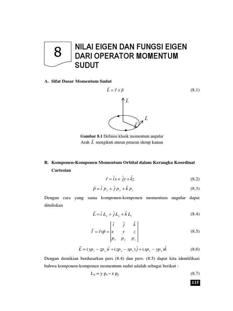 bahwa komponen-komponen momentum sudut adalah sebagai berikut :