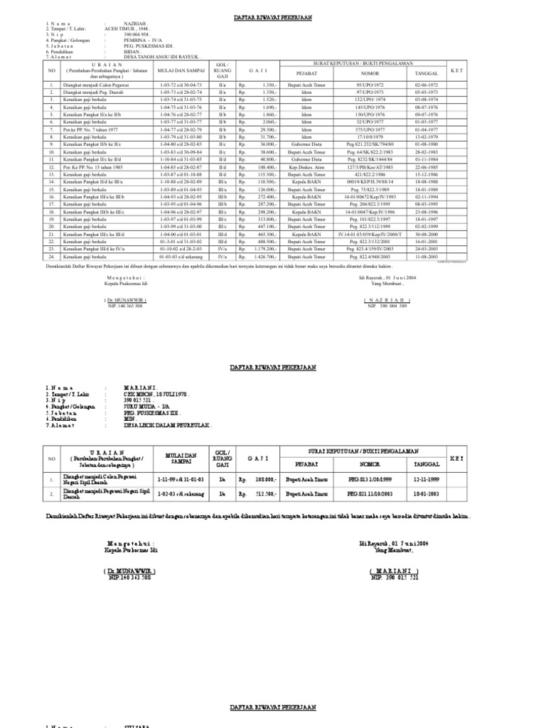 Daftar Riwayat Pekerjaan Pegawai Puskesmas