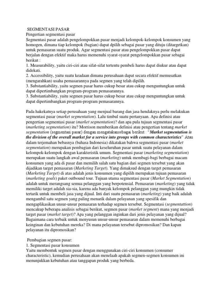 tertentu. Dengan menggolongkan atau mensegmentasikan pasar seperti itu, dapat dikatakan