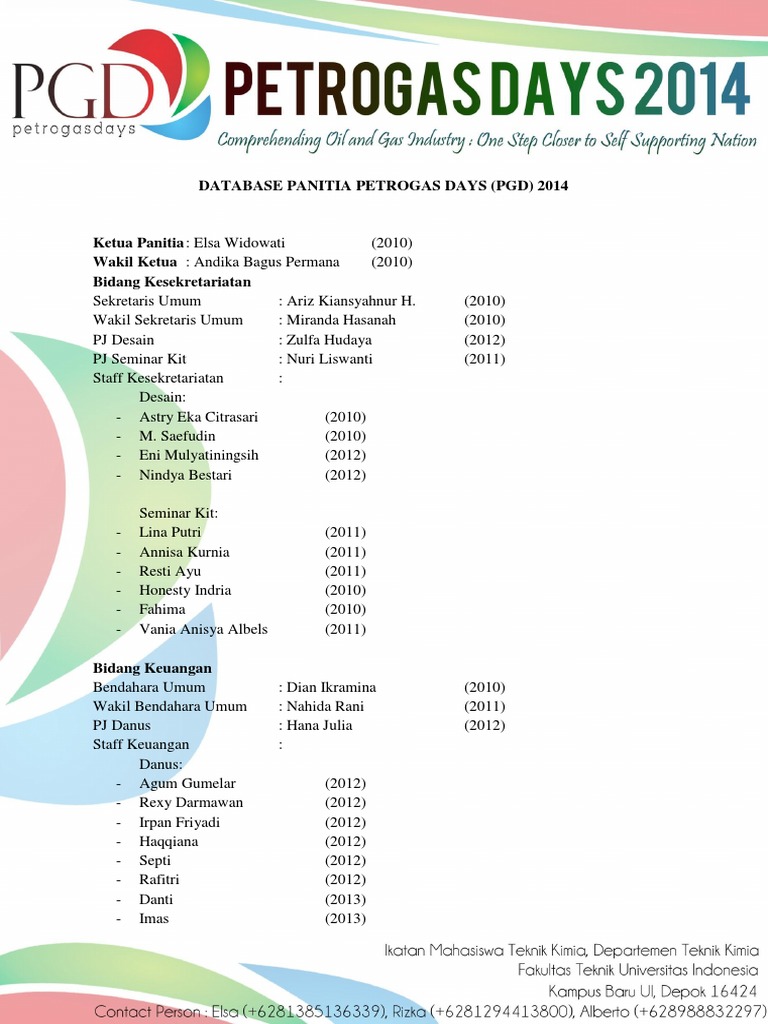 DATABASE PANITIA PETROGAS DAYS (PGD) 2014