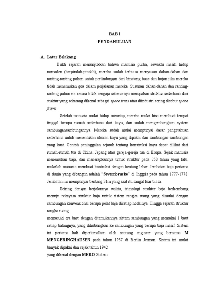 sambungan konvensional berupa pelat baja disetiap nodalnya. Hingga sejarah struktur
