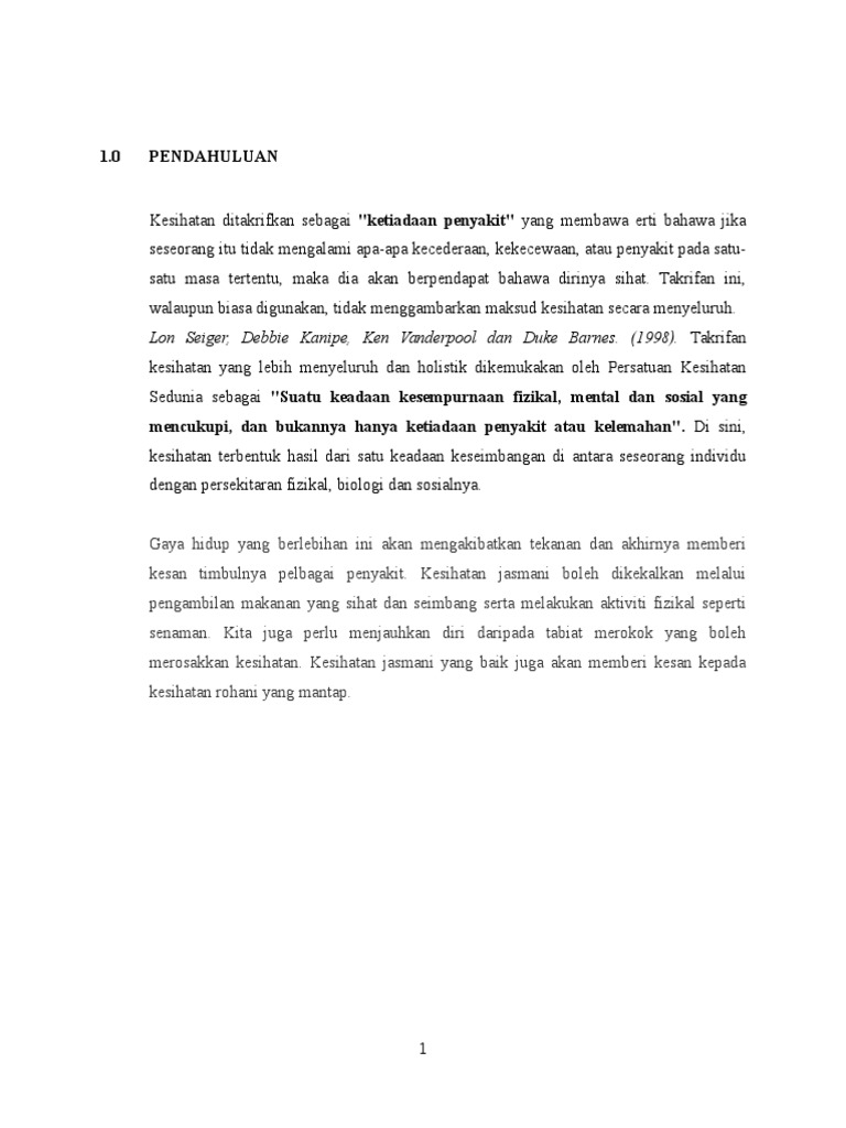 seseorang itu tidak mengalami apa-apa kecederaan, kekecewaan, atau penyakit pada satusatu masa tertentu, maka dia akan berpendapat bahawa dirinya sihat. Takrifan ini,