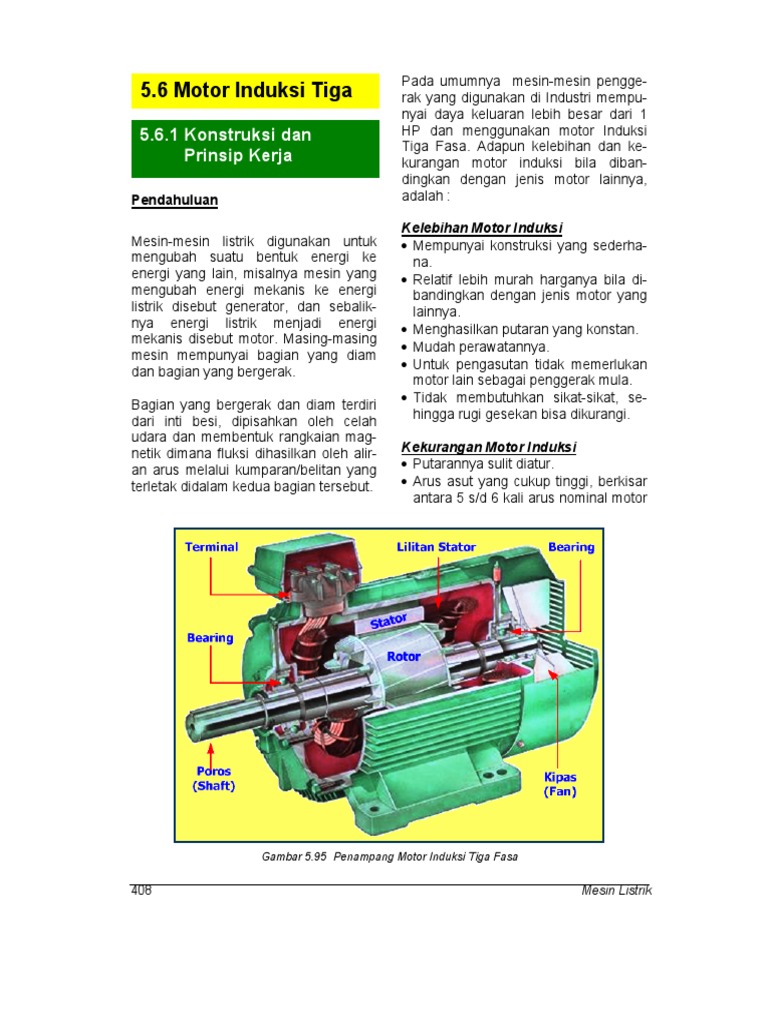 Tiga Fasa. Adapun kelebihan dan kekurangan motor induksi bila dibandingkan dengan jenis motor lainnya,