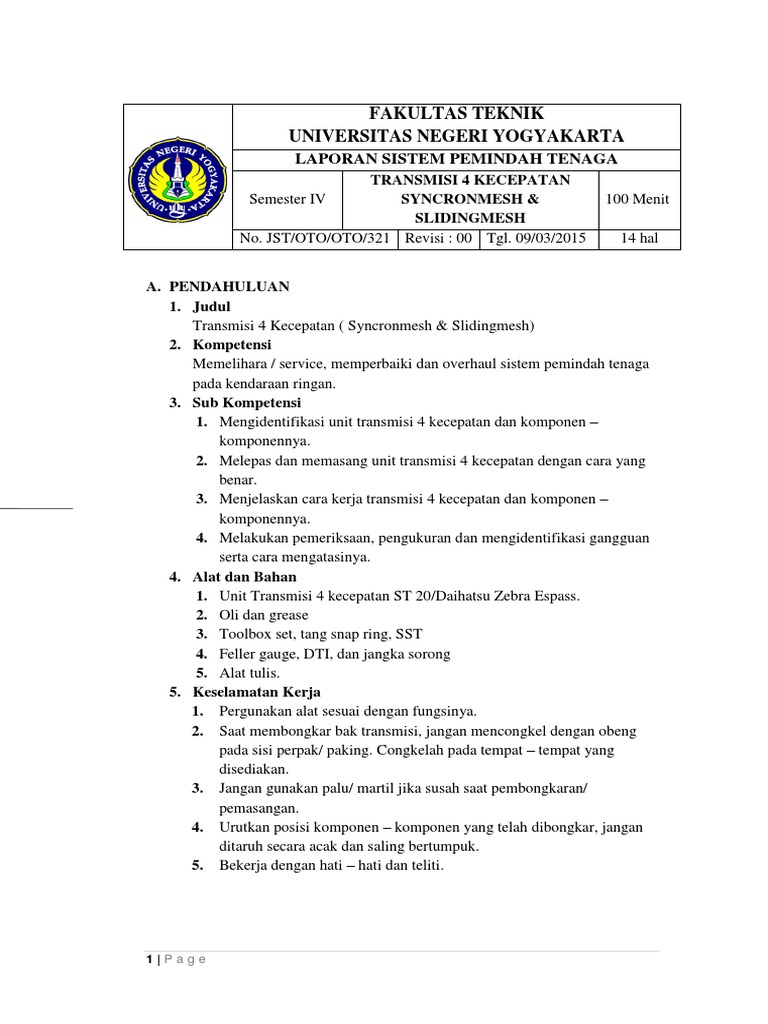 1. Mengidentifikasi unit transmisi 4 kecepatan dan komponen