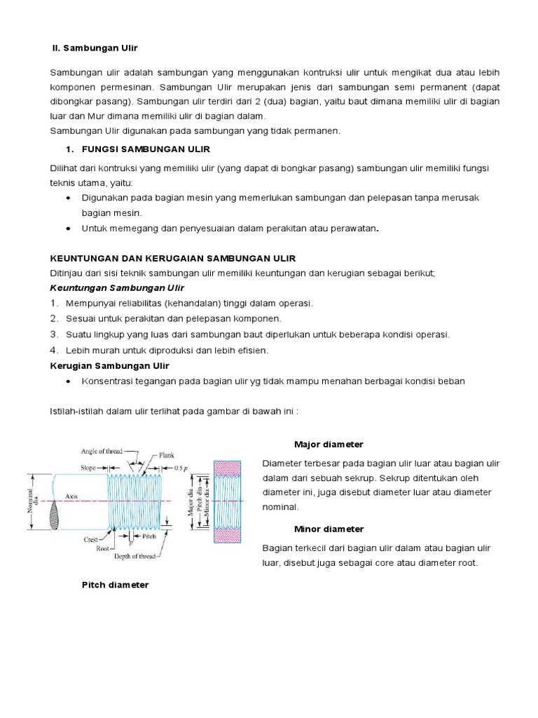 dibongkar pasang). Sambungan ulir terdiri dari 2 (dua) bagian, yaitu baut dimana memiliki ulir di bagian