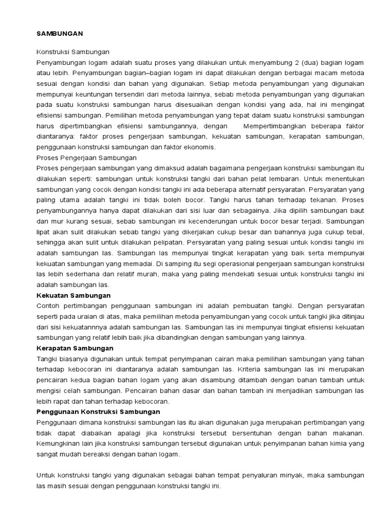 dilakukan seperti: sambungan untuk konstruksi tangki dari bahan pelat lembaran. Untuk menentukan