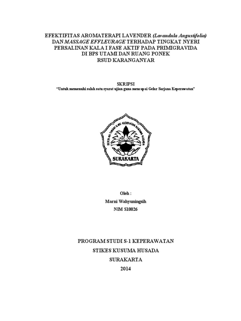 Indrati, D. (2009). Efektifitas terapi aroma lavender terhadap tingkat nyeri dan