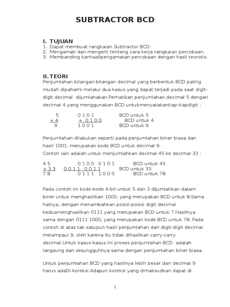 1. Dapat membuat rangkaian Subtractor BCD.