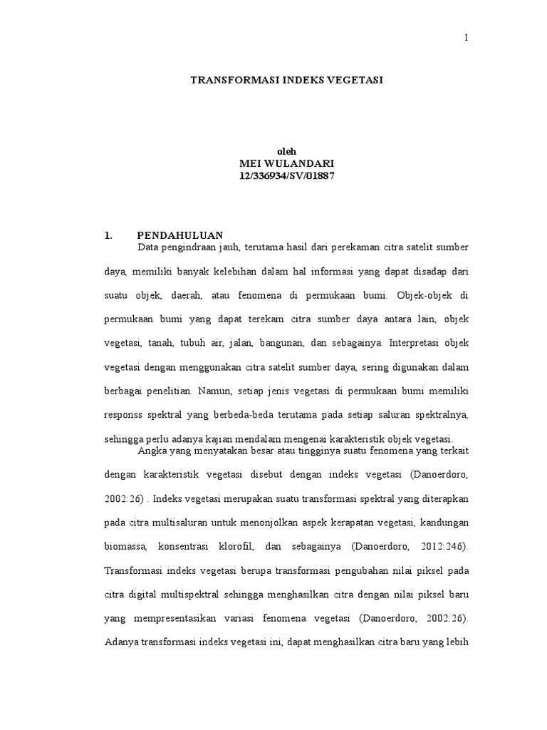 2002:26) . Indeks vegetasi merupakan suatu transformasi spektral yang diterapkan
