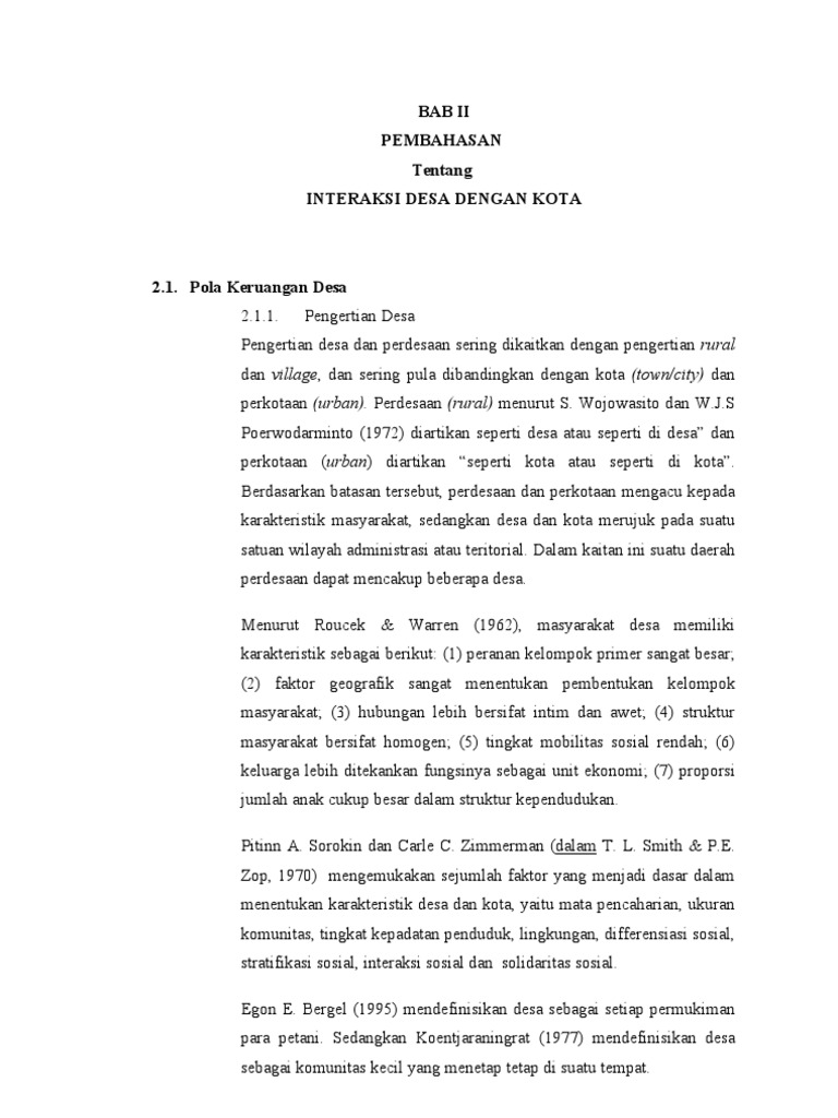 timbal-balik dengan daerah lain.. Menurut paul H.Landis : desa adalah