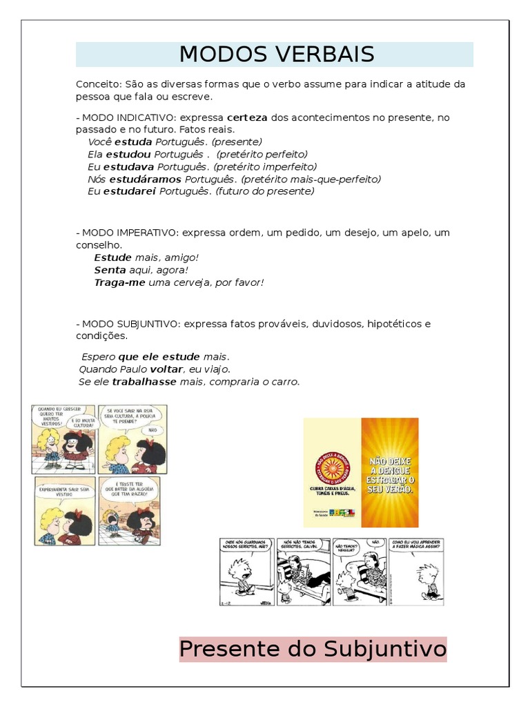 - MODO SUBJUNTIVO: expressa fatos provveis, duvidosos, hipotticos e