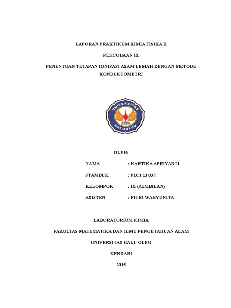 2015 pukul 07.15-10.00 WITA bertempat di Laboratorium Kimia Fisika, Jurusan