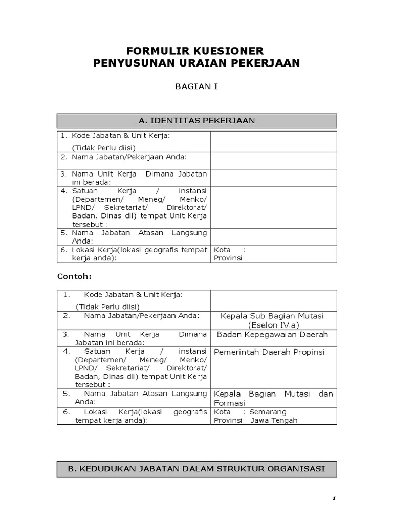 ----------------------------------------------------------------------------------------FORMULIR KUESIONER PENYUSUNAN URAIAN PEKERJAAN