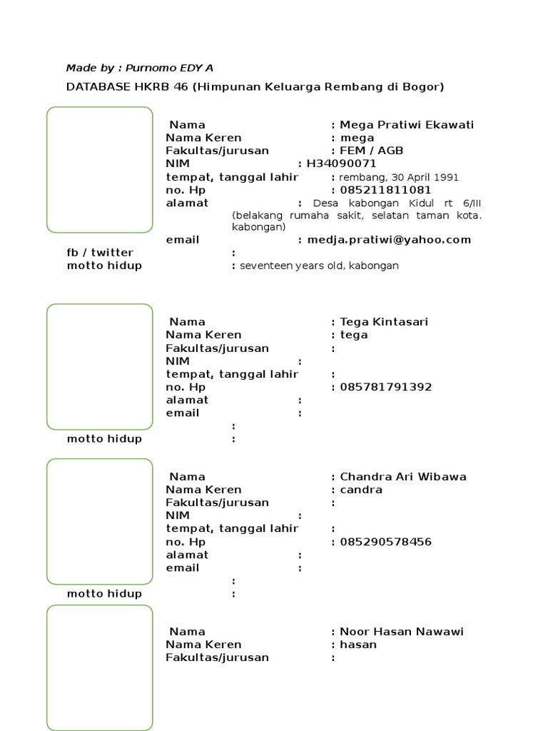 DATABASE HKRB 46 (Himpunan Keluarga Rembang di Bogor)