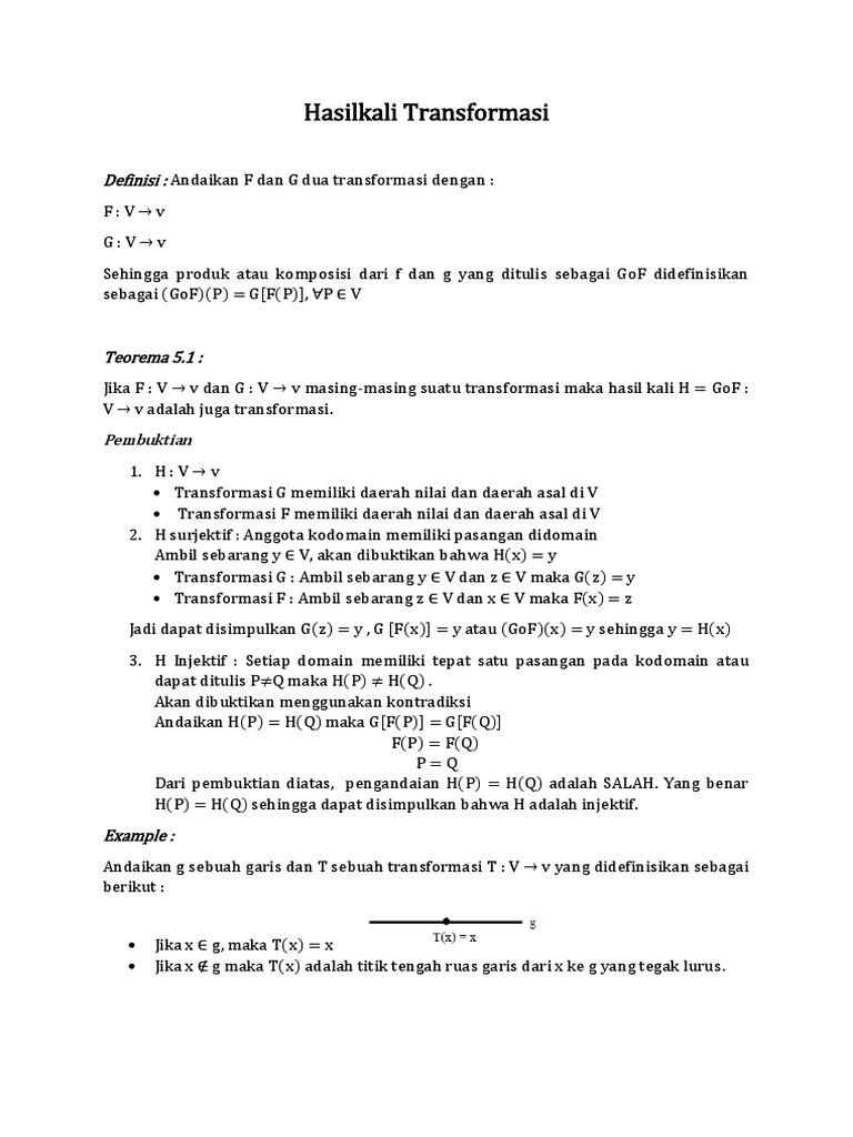 Andaikan g sebuah garis dan T sebuah transformasi T : V v yang didefinisikan sebagai