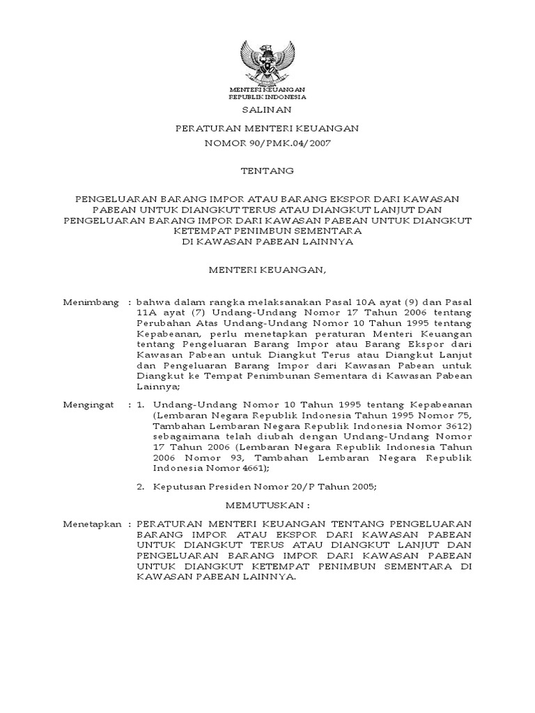 : 1. Undang-Undang Nomor 10 Tahun 1995 tentang Kepabeanan