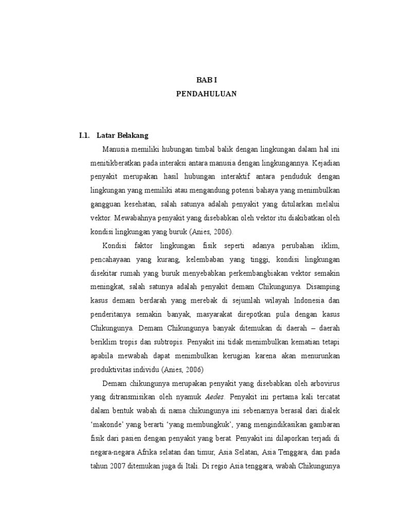 tahun, awal 2001 terjadi kejadian luar biasa (KLB) demam Chikungunya terjadi