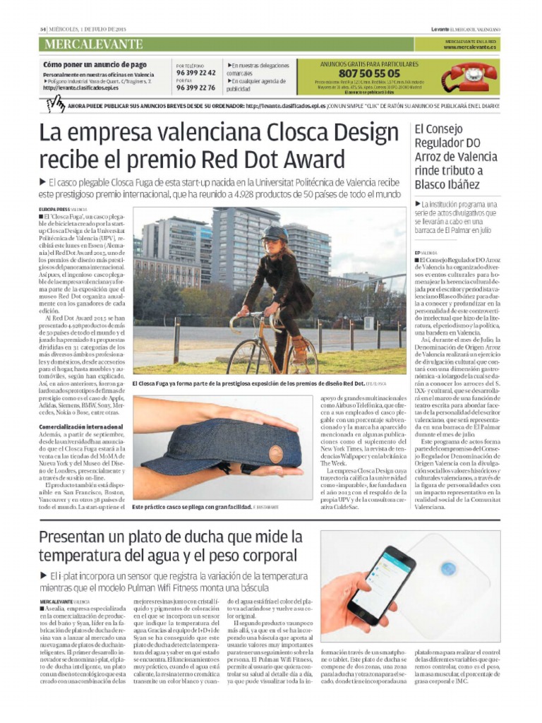> El casco plegable Closca Fuga de esta start up nacida en la Universitat Politécnica de Valencia recibe Blasco Ibafiez