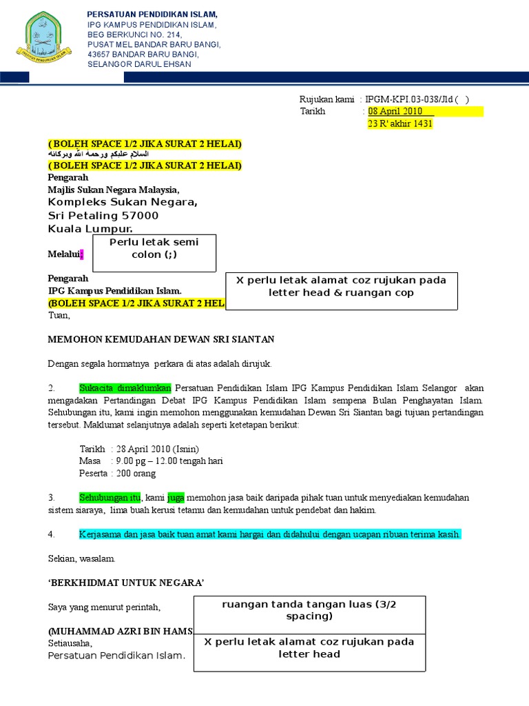 ( BOLEH SPACE 1/2 JIKA SURAT 2 HELAI)