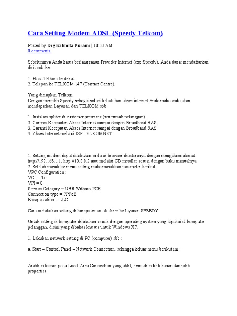 Cara Setting Modem ADSL (Speedy Telkom)