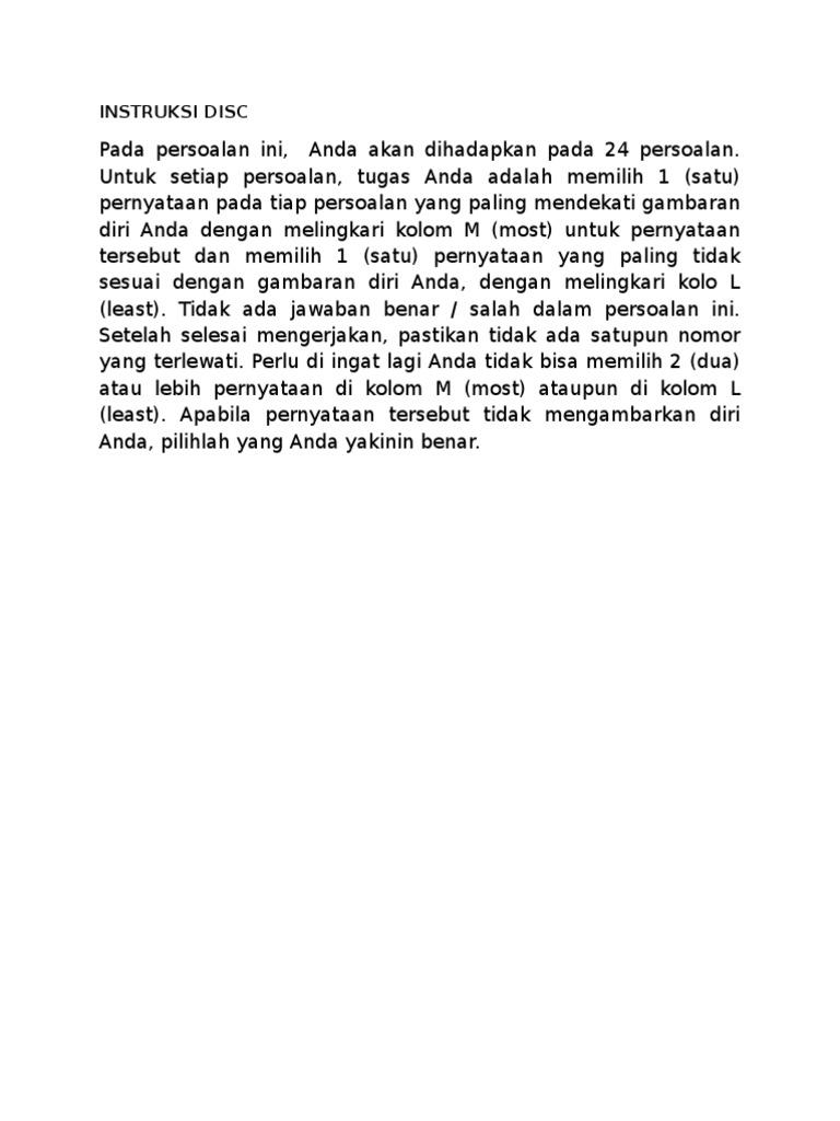 tersebut dan memilih 1 (satu) pernyataan yang paling tidak