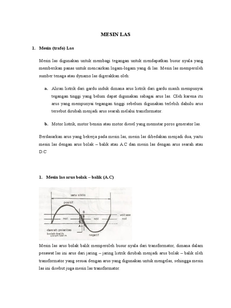mesin las dengan arus bolak balik atau A.C dan mesin las dengan arus searah atau