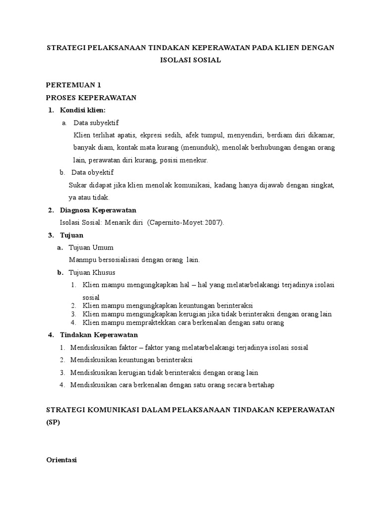 STRATEGI PELAKSANAAN TINDAKAN KEPERAWATAN PADA KLIEN DENGAN