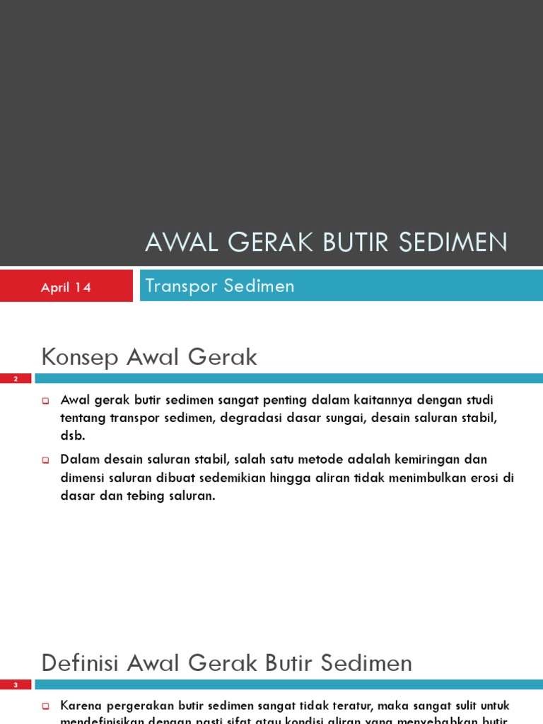Awal gerak butir sedimen sangat penting dalam kaitannya dengan studi