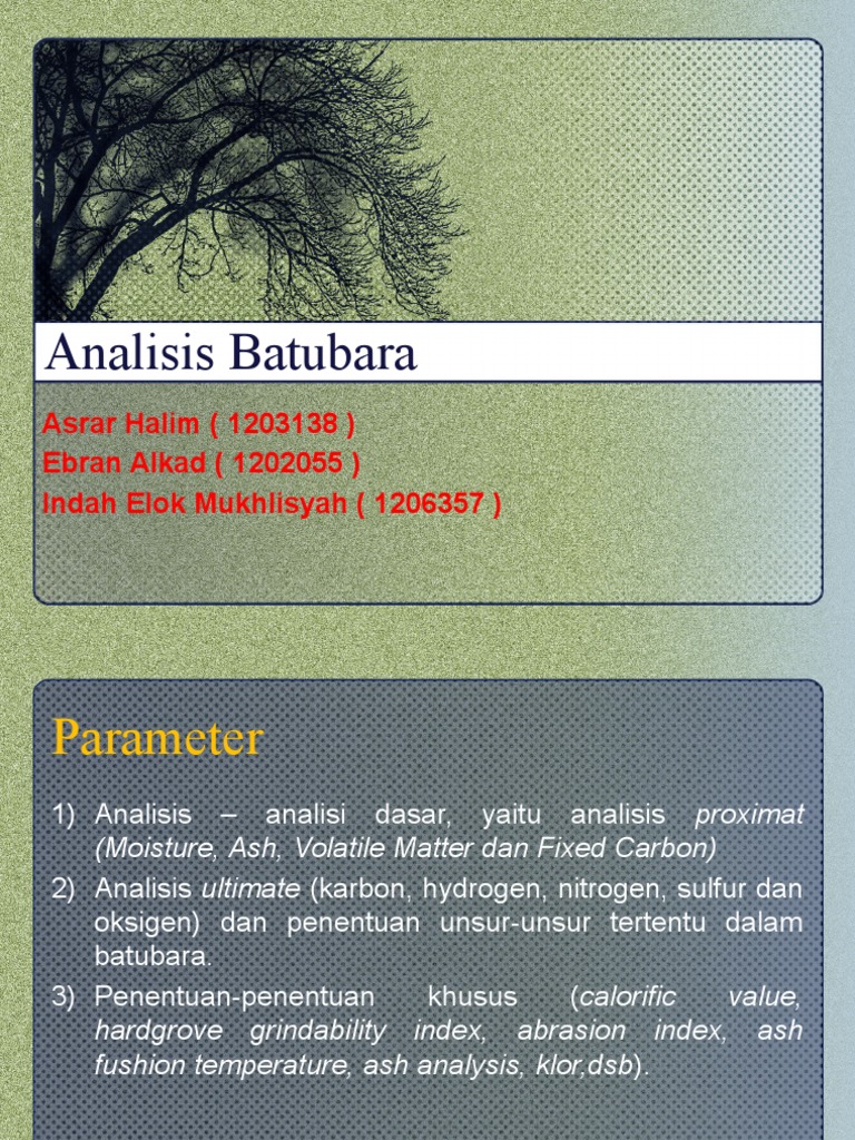 (Moisture, Ash, Volatile Matter dan Fixed Carbon)