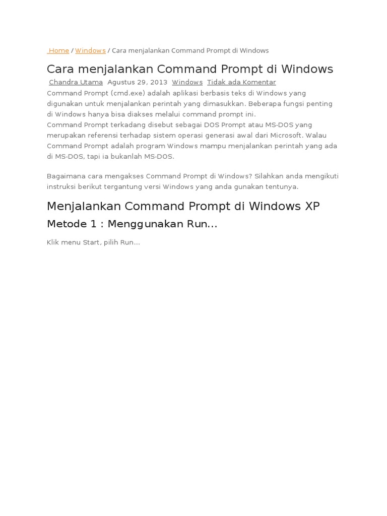 Command Prompt adalah program Windows mampu menjalankan perintah yang ada