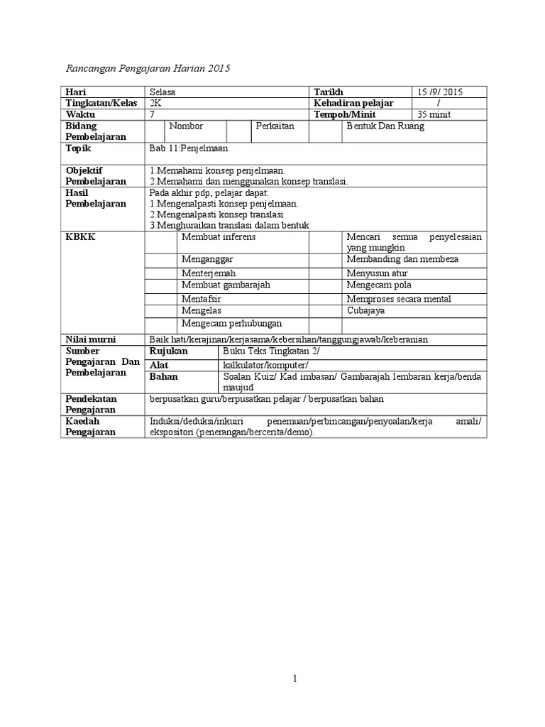 Rancangan Pengajaran Harian 2015